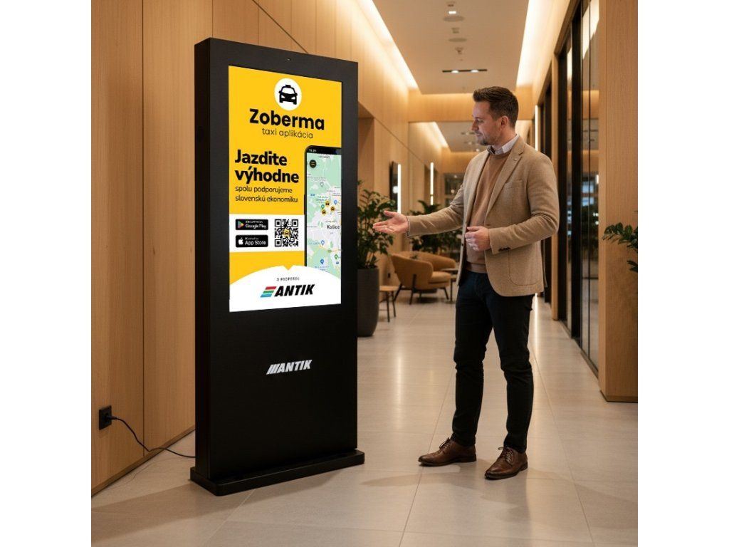 ANTIK Exteriérový 55" displej je určený pre vonkajšie použitie aj v tých najnáročnejších podmienkach. Vďaka technológii Sunlight Viewable Image a extrémnemu jasu 3000 nitov zaručuje maximálnu viditeľnosť aj na priamom slnku. Displej je zároveň vybavený kapacitnou dotykovou technológiou, ktorá umožňuje presnú a plynulú interakciu so zákazníkom.