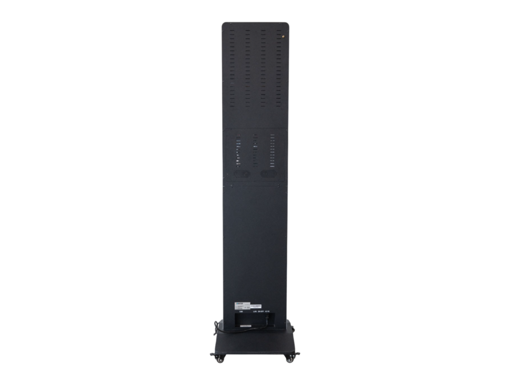 Zadná strana displeja obsahuje presne umiestnené ventilačné otvory pre efektívne pasívne chladenie. Tento systém umožňuje prirodzené odvádzanie tepla bez potreby ventilátorov. Minimalizuje riziko prehriatia a predlžuje životnosť zariadenia. Umožňuje tichú prevádzku aj v tichom prostredí ako recepcia či galéria. Navrhnuté pre stabilný výkon pri dlhodobom používaní.