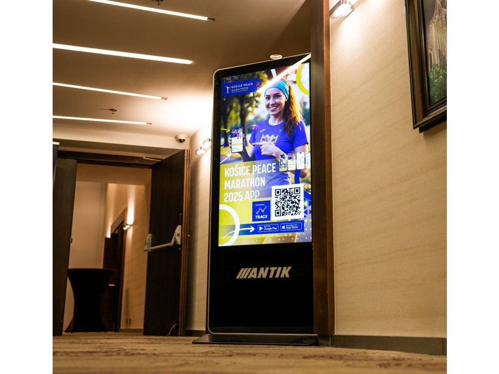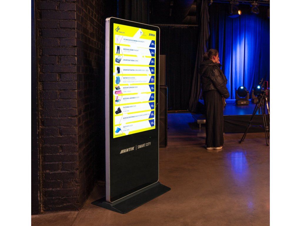 Zariadenie je navrhnuté ako pevný, voľne stojaci panel určený pre komerčné použitie. Hmotnosť 95 kg poskytuje dostatočnú stabilitu, čím minimalizuje riziko posunu alebo prevrátenia. Rozmery konštrukcie zabezpečujú veľkú zobrazovaciu plochu viditeľnú aj z väčšej vzdialenosti. Súčasne sa zachováva bezpečná prevádzka bez nutnosti prídavného kotvenia. Zariadenie je vhodné pre recepcie, lobby, nákupné zóny a výstavné plochy, kde sa vyžaduje stabilný informačný panel s dlhou životnosťou.