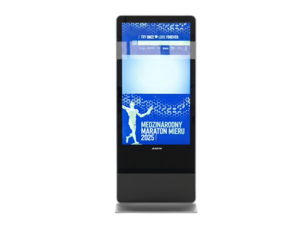 Displej poskytuje konzistentný a spoľahlivý obrazový výkon, navrhnutý pre nepretržitú prevádzku. Full HD panel zabezpečuje presné a čisté vykreslenie textu aj grafiky, čo je kľúčové pri informačných, navigačných aj prezentačných aplikáciách. Jas 2000 cd/m² udržiava výbornú čitateľnosť aj v silne osvetlených interiéroch, takže nie je potrebné používať dodatočné tieniace riešenia.