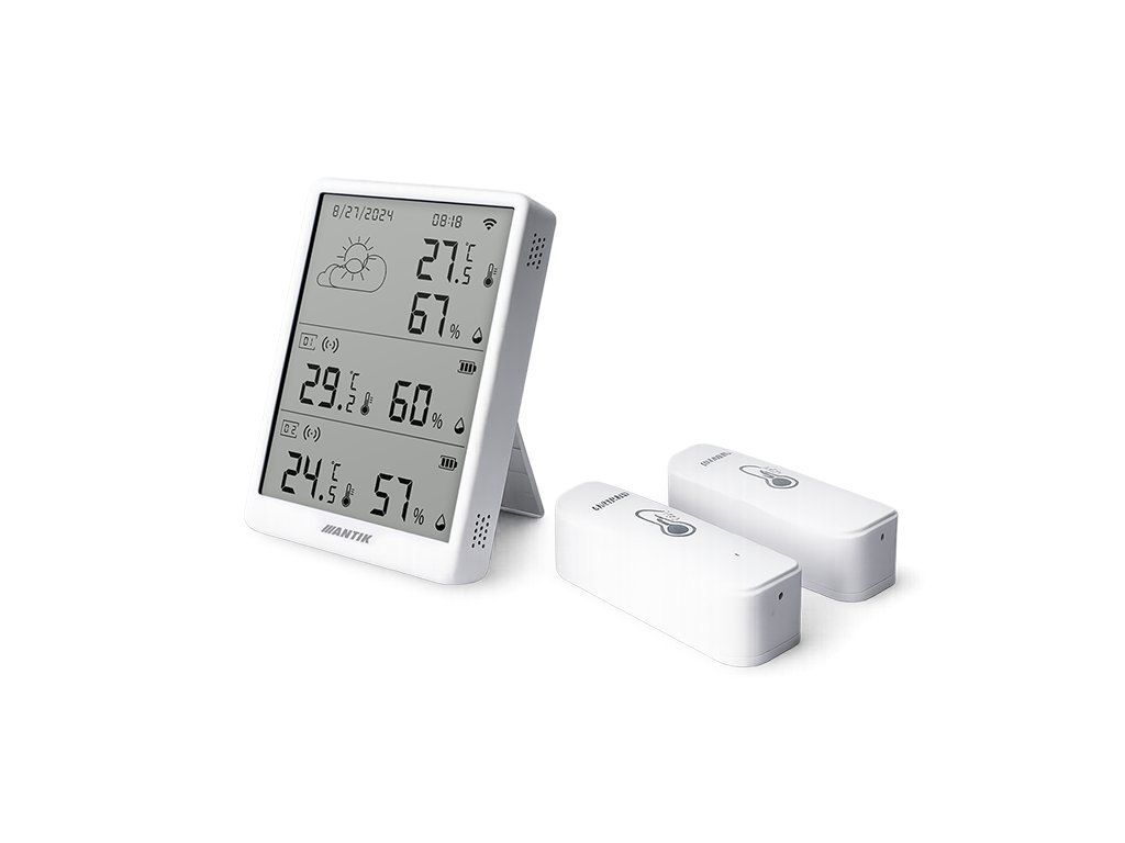 Teplotná stanica podporuje pripojenie až 10 externých 433 MHz senzorov, takže môžete sledovať podmienky v každej miestnosti aj vonku. Okrem dvojice senzorov v balení si môžete dokúpiť aj ďalšie - určené pre interiér alebo pre náročné vonkajšie prostredie s vodoodolnosťou IP65. Vďaka tomu máte úplnú kontrolu nad teplotou a vlhkosťou doma, v kancelárii aj okolo domu.