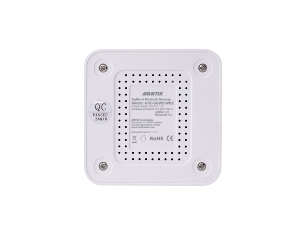 Smart brána slúži ako centrálna jednotka, ktorá prepája ZigBee a Bluetooth zariadenia s WiFi sieťou. Umožňuje ich spoločné ovládanie, správu a automatizáciu cez ANTIK SmartHome aplikáciu.