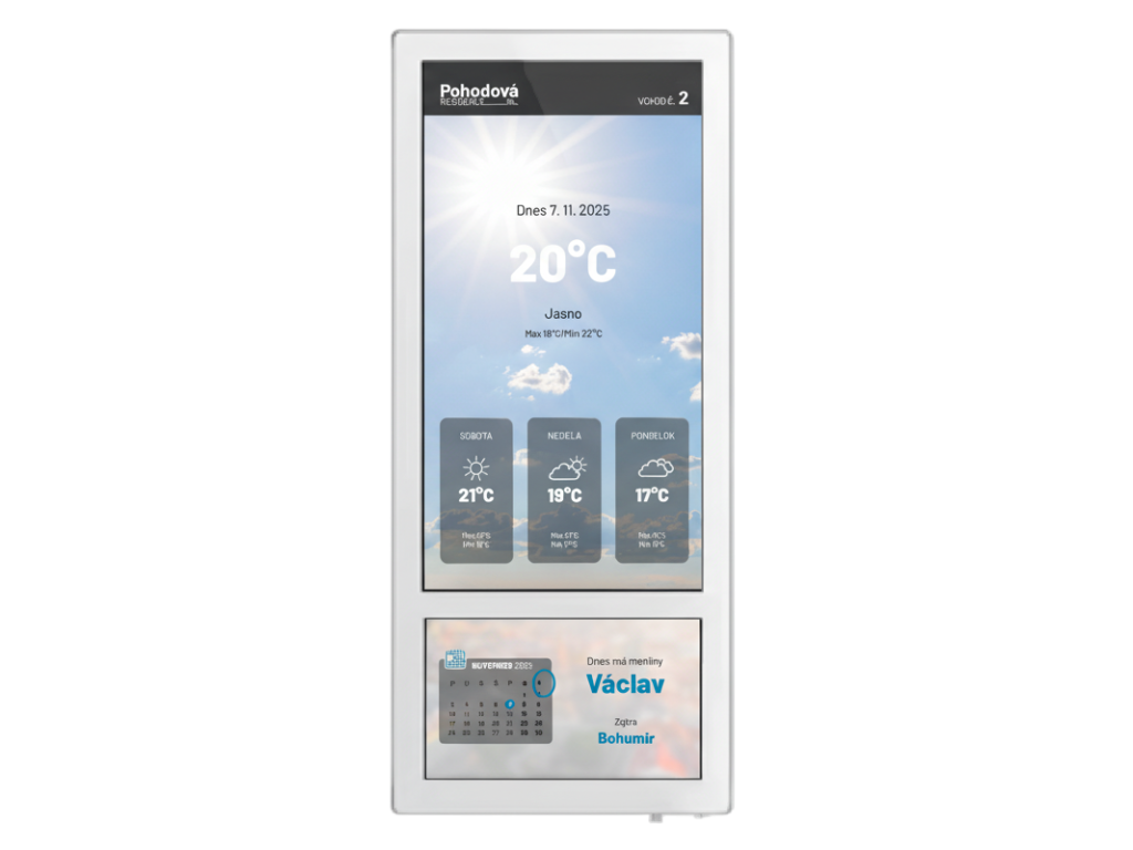 Digitálna nástenka slúži ako moderný komunikačný kanál medzi správcami a obyvateľmi bytového domu. Umožňuje zobrazovať oznamy, udalosti, údržbu aj energetické informácie pre konkrétny vchod alebo celú budovu.