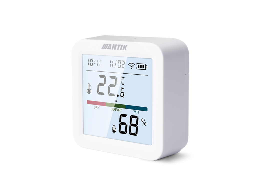 Senzor sa pripája k Wi-Fi sieti a umožňuje sledovanie údajov prostredníctvom aplikácií ANTIK SmartHome, TUYA alebo Smart Life. V aplikácii máte k dispozícii aktuálne hodnoty aj históriu meraní vrátane grafov. Môžete si nastaviť vlastné limity pre teplotu a vlhkosť a dostávať upozornenia pri ich prekročení. Zariadenie tak poskytuje praktický nástroj na sledovanie a vyhodnocovanie podmienok v čase.