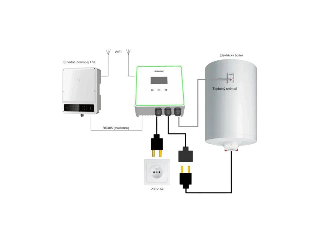 Zariadenie ANTIK AC menič pre ohrev vody pracuje na princípe inteligentného riadenia prebytkov energie z vašej domácej fotovoltickej elektrárne. Počas dňa, keď je výroba elektriny najvyššia, ale spotreba v domácnosti nízka, by energia bežne odchádzala späť do siete – často bez výraznej finančnej návratnosti.