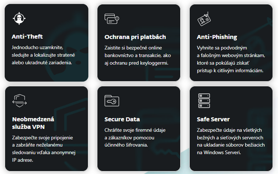 📱 Mobilná ochrana – zabezpečenie firemných smartfónov vrátane funkcií proti krádeži.